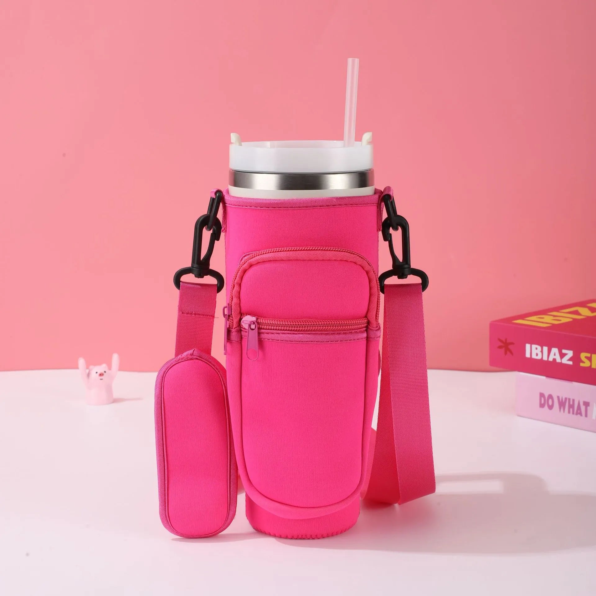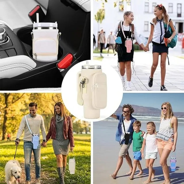 Our premium neoprene water bottle carrier bag is specially designed for the Stanley Quencher 40oz tumbler. With an adjustable strap, extra pockets, and durable protection, this sleeve makes carrying your cup easier, safer, and more stylish—perfect for outdoor adventures, gym, commuting, or daily use.